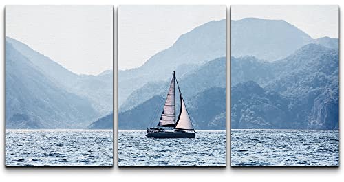 Super Sale 🛒 wall26 Canvas Print Wall Art Set Blue Forest Mountain Horizon with Sailboat Nature Wilderness Photography Realism Rustic Scenic Colorful Travel for Living Room, Bedroom, Office - 16"x24"x3 Panels